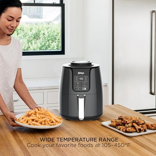 Ninja | Air Fryer | 4 QT Capacity | 4-in1 Roast, Crisp, Roast, Reheats, & Dehydrates | Dishwasher Safe Parts | Includes 20 Easy & Healthy Recipes | Compact | Grey | AF101